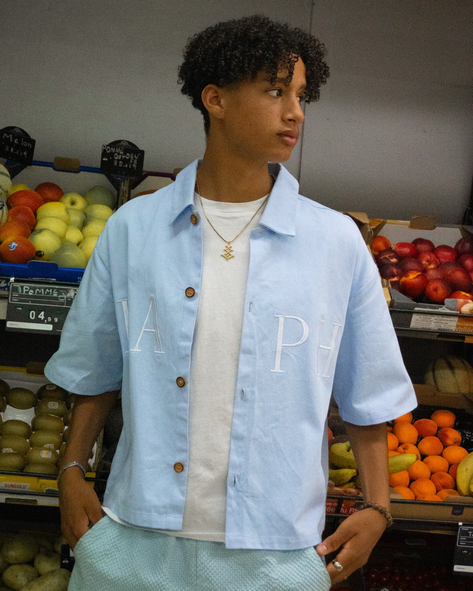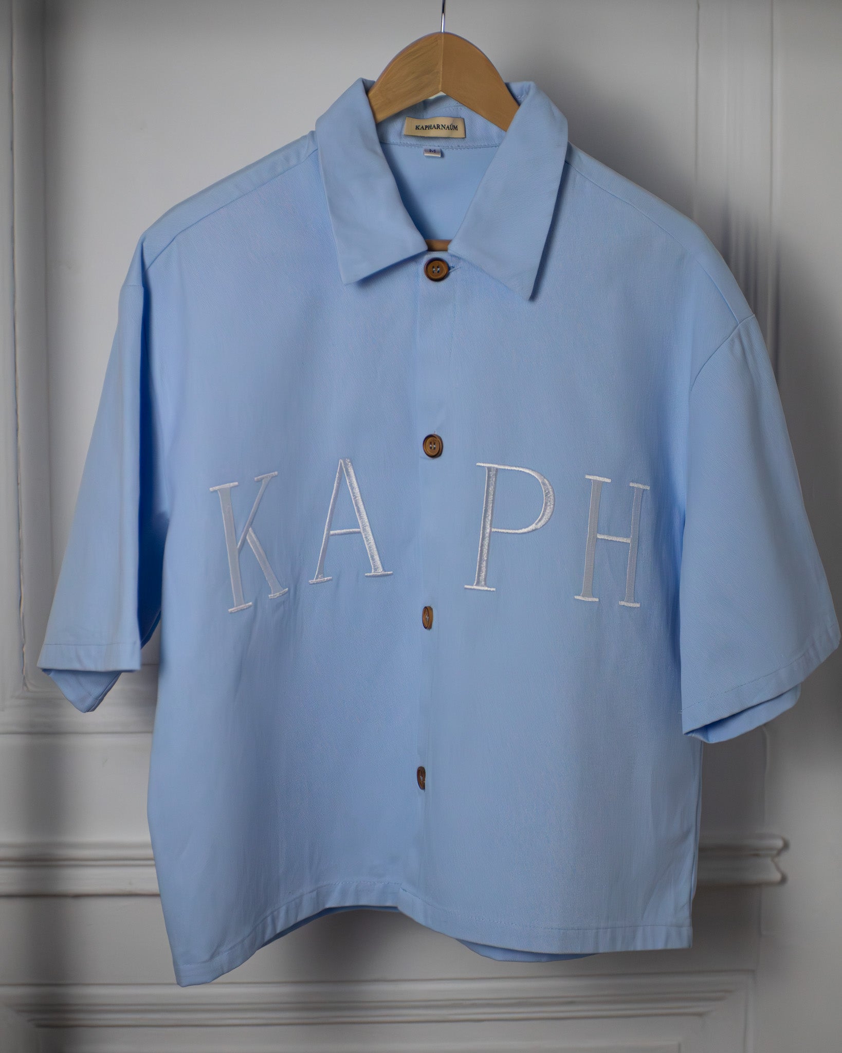 The KAPH Boxy Blue Button-Up Shirt is made from 240gsm heavyweight cotton, offering a premium feel with lasting structure. Designed with a relaxed, boxy silhouette, this shirt features long sleeves, a pointed collar, and tonal button closure. Embroidered KAPH lettering across the chest serves as the focal point, bringing bold identity to a clean design.